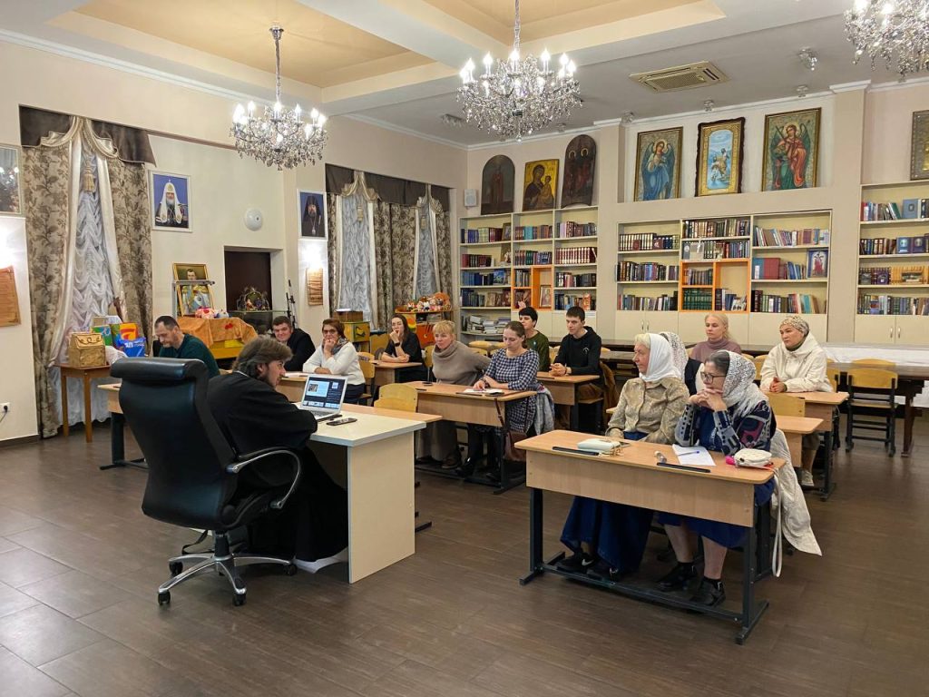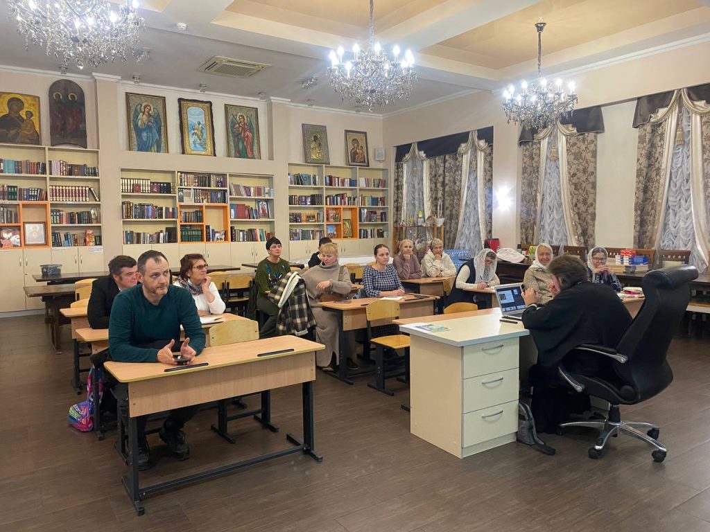 В субботу по окончанию всенощного бдения, лекцию в воскресной школе для взрослых читал иерей Иоанн Парахин