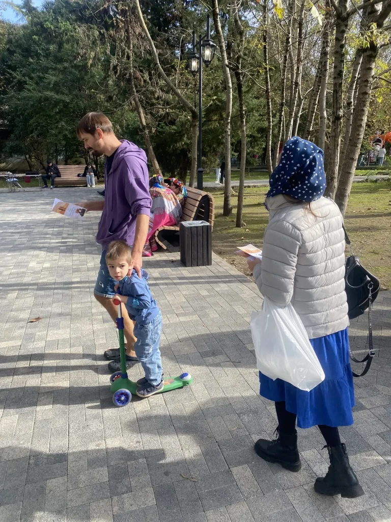Ребята раздавали прохожим листовки, рассказывающие о духовном смысле праздника, о заступничестве Пресвятой Богородицы и о том, как вера и единство помогли нашему народу в трудные времена.