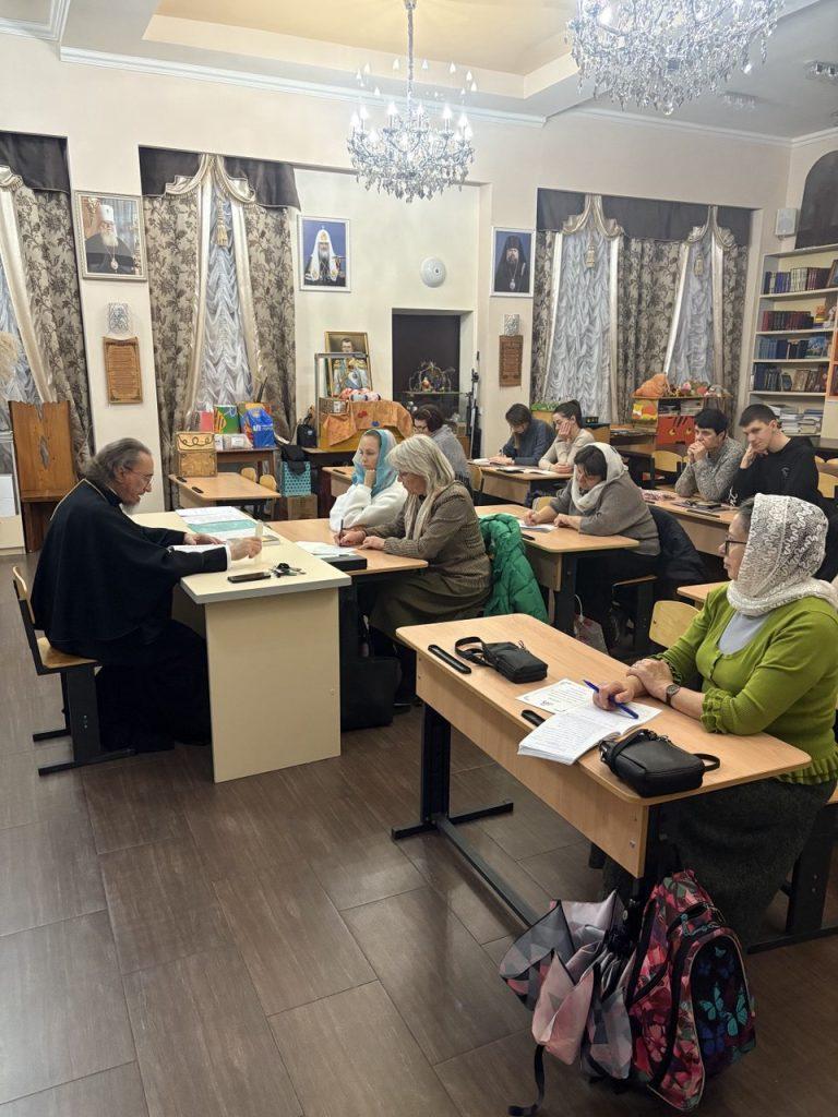 24 января, по окончании Всенощного бдения, на территории храма Преображения Господня состоялось очередное занятие воскресной школы для взрослых.
