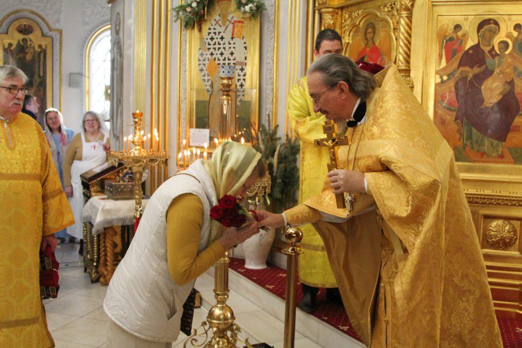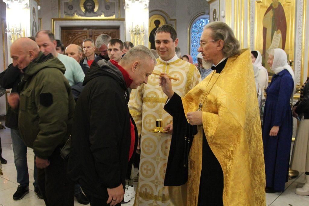 После отпуста настоятель храма игумен Софроний (Есимов) обратился к прихожанам с пастырским словом и поздравил их с Воскресным днем.