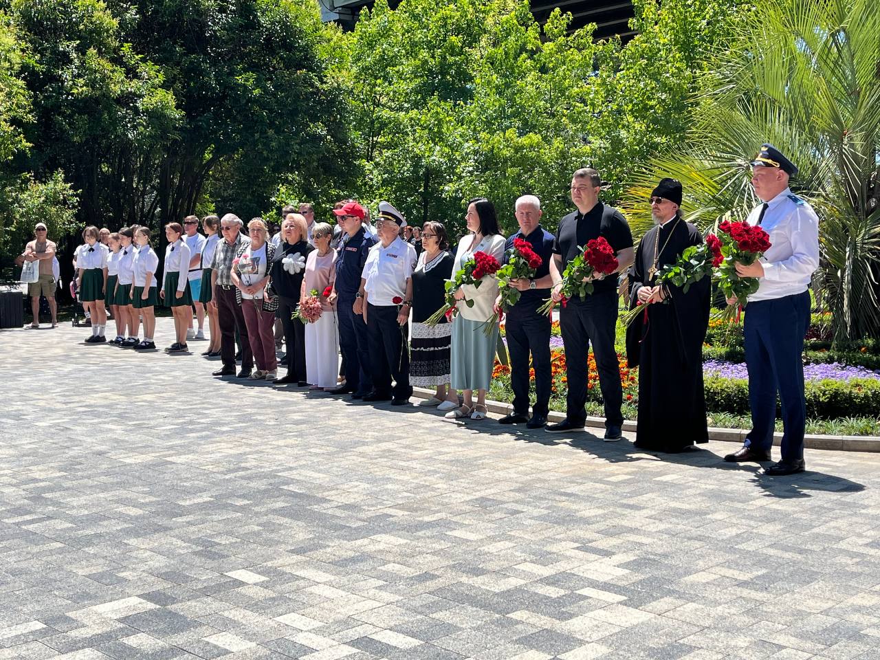 22 июня, в День памяти и скорби, благочинный Хостинского церковного округа игумен Софроний (Есимов) принял участие в церемонии возложения цветов у мемориала воинам-хостинцам, погибшим на фронтах во время Великой Отечественной Войны.