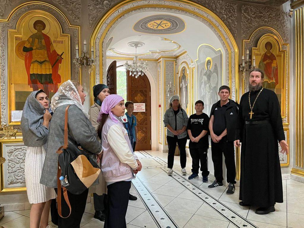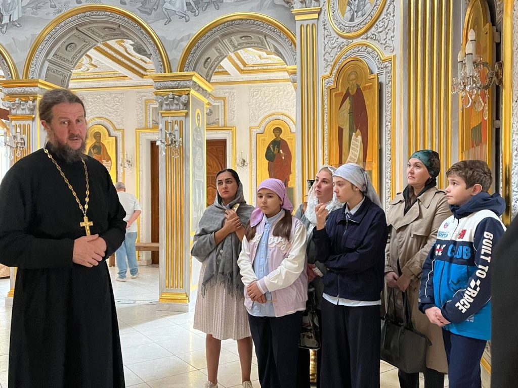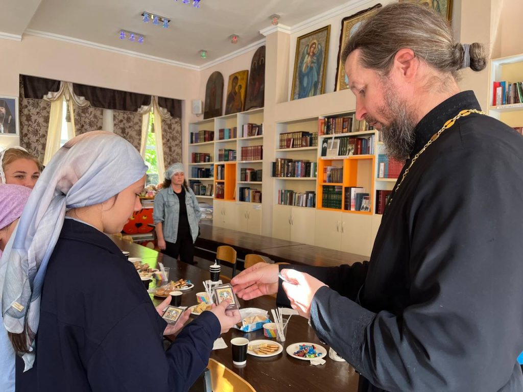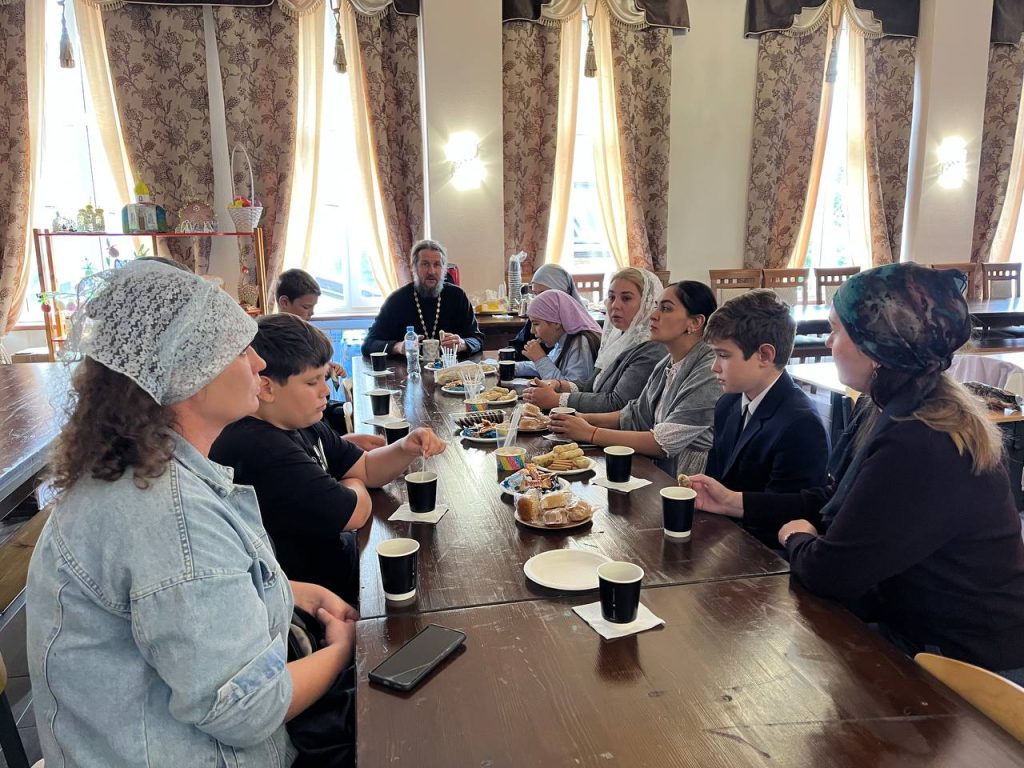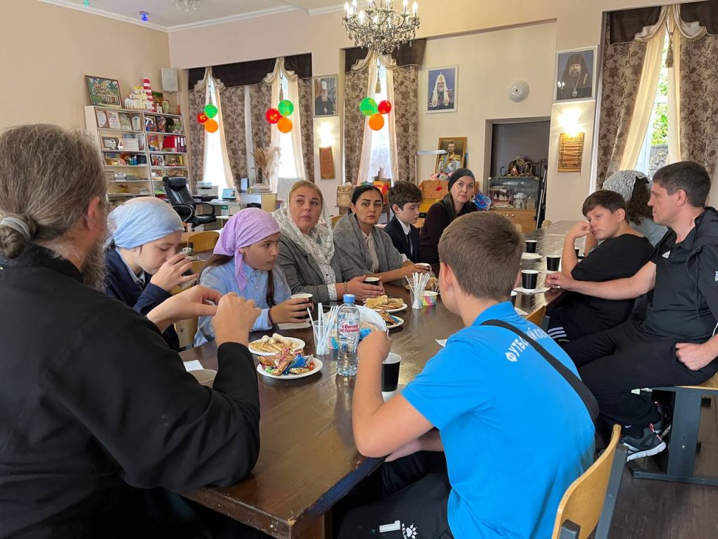 Учащиеся и их родители познакомились с историей храма и его святынями, а затем в воскресной школе состоялось чаепитие и беседа.