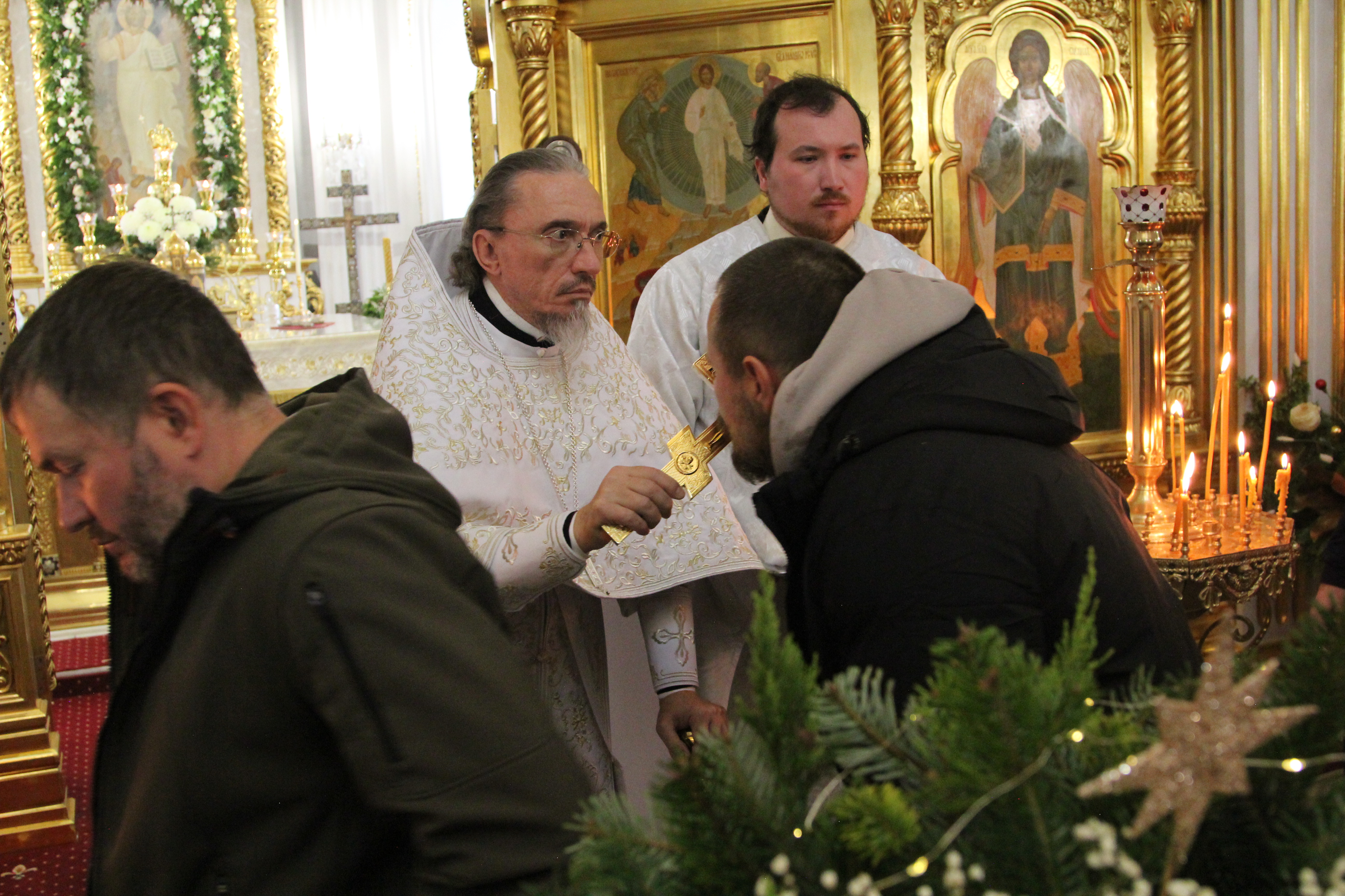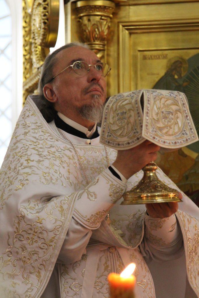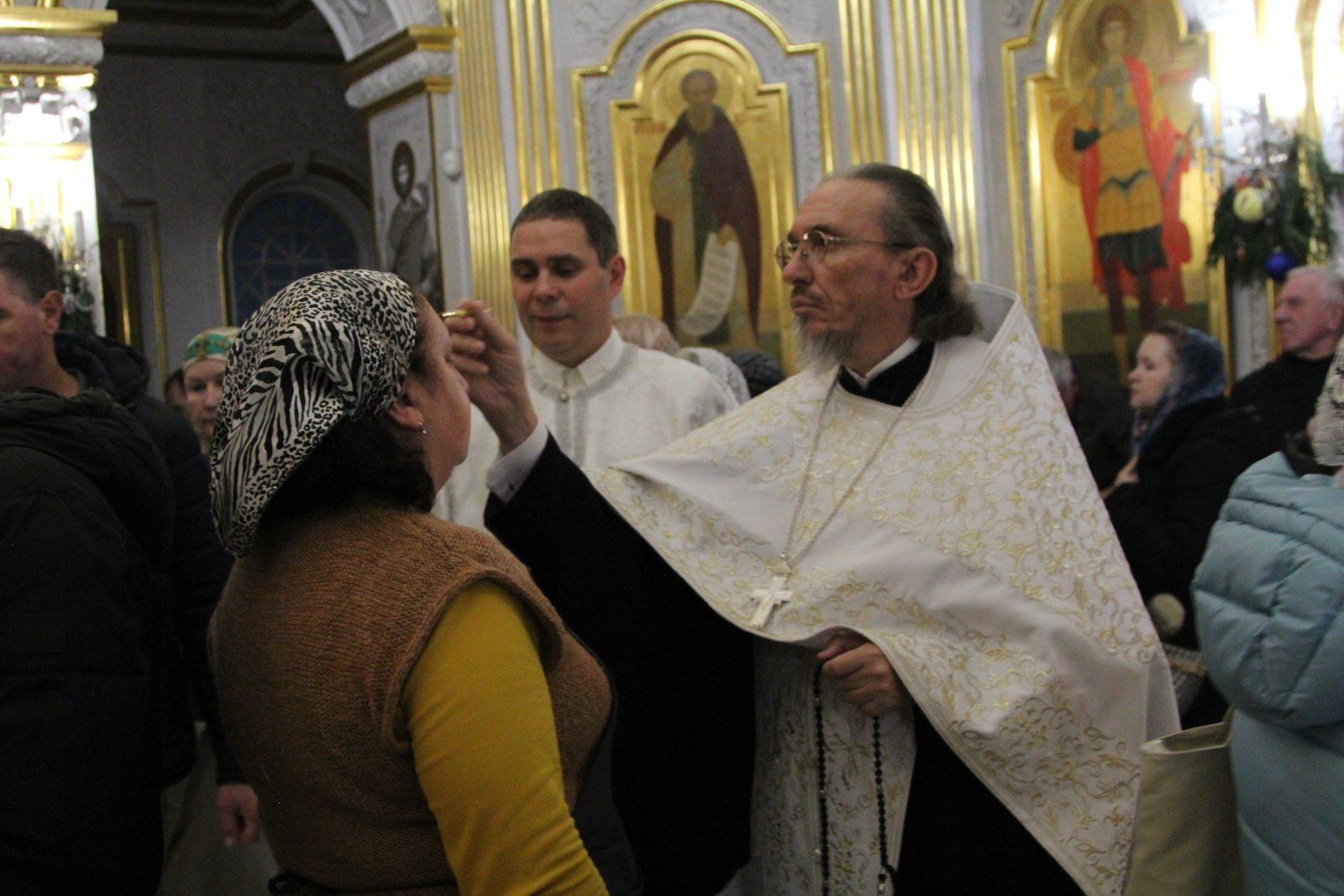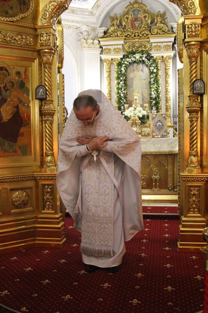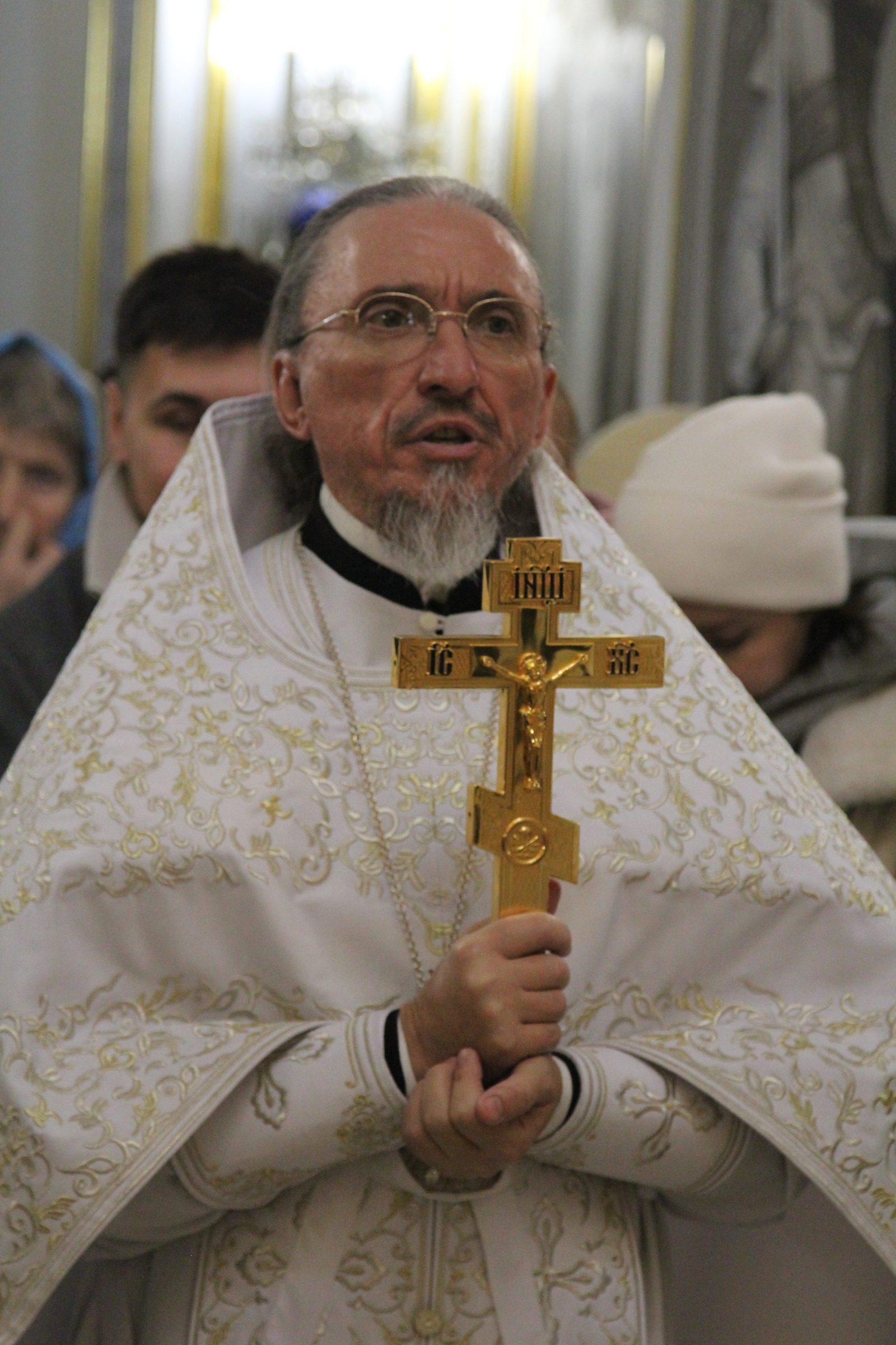 После отпуста настоятель храма игумен Софроний (Есимов) обратился к прихожанам с пастырским словом и поздравил их с Праздником