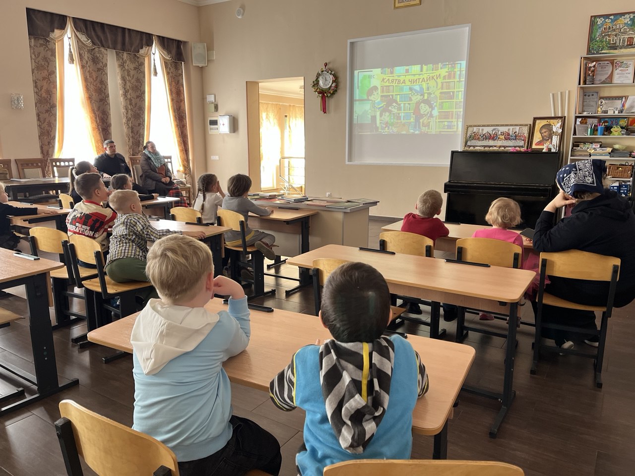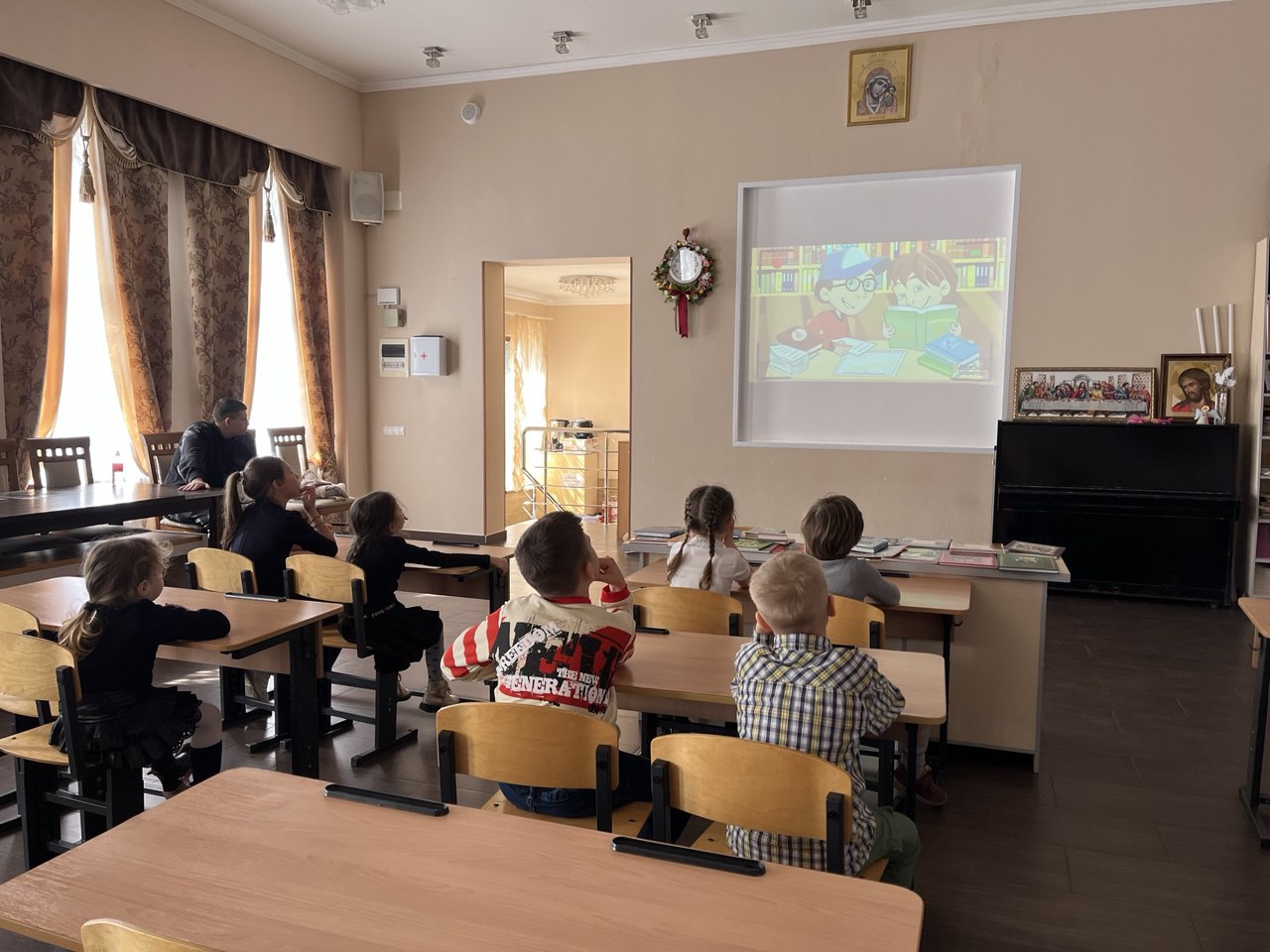 15 марта мероприятия продолжились занятием для средней и старшей групп. Урок провёл духовник воскресной школы, клирик храма Преображения Господня иерей Иоанн Парахин.