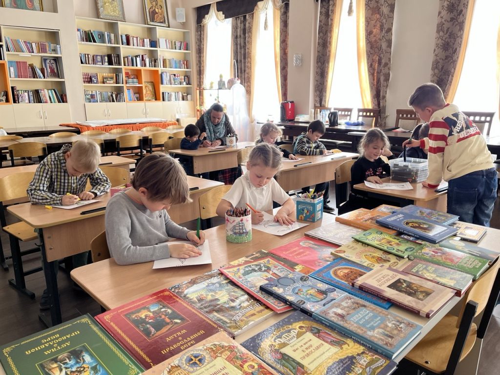 14 марта занятие для младшей группы провела директор воскресной школы Татьяна Павловна Коженовская. В доступной и увлекательной форме она рассказала детям о зарождении письменности и о том, как благодаря трудам диакона Ивана Фёдорова на Руси появилась первая печатная книга.