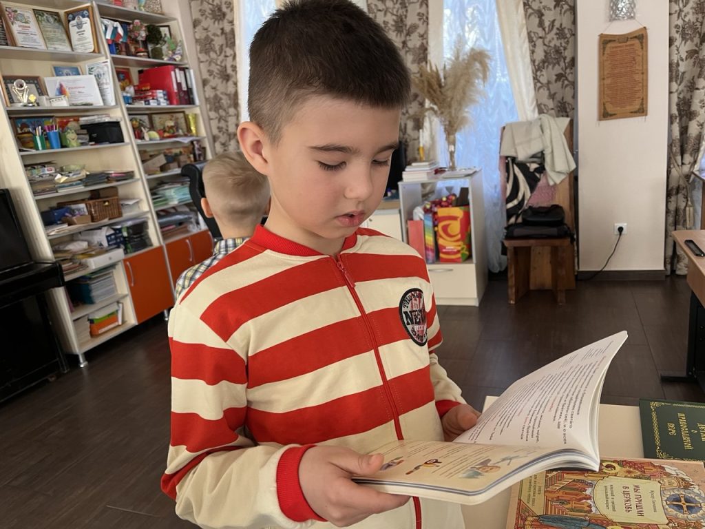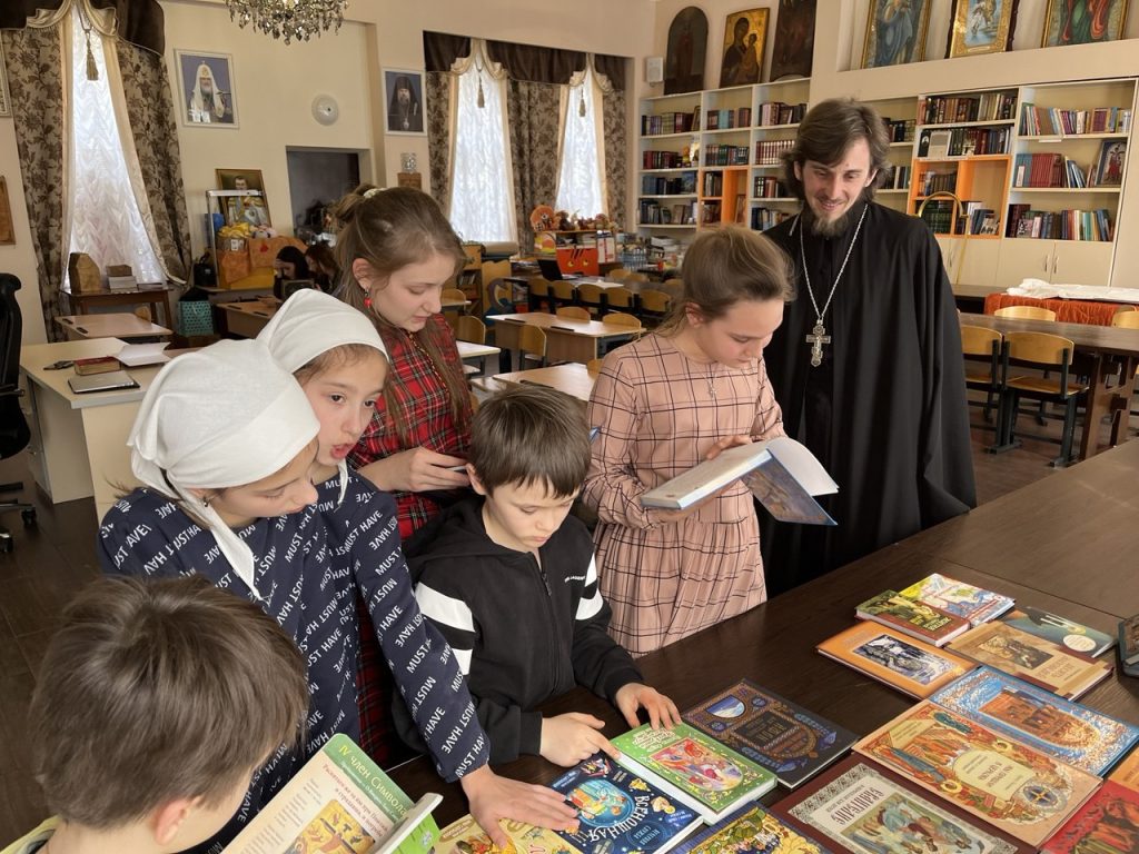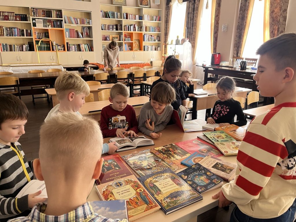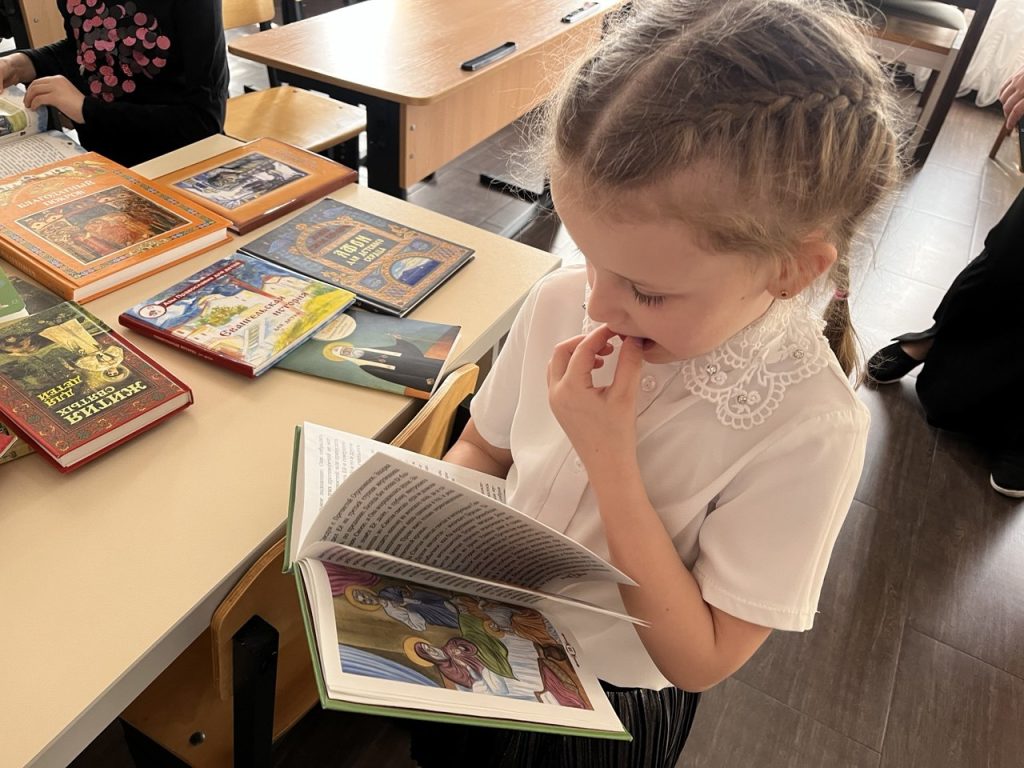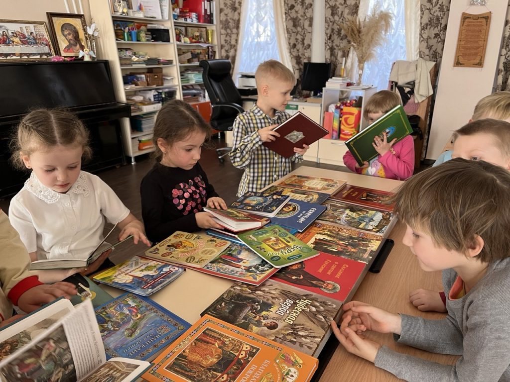 Особый интерес у ребят вызвало знакомство с детскими православными изданиями из приходской библиотеки. Малышам были представлены детская Библия, жития святых в переложении для детей и другие книги, помогающие юным читателям познакомиться с основами православной веры и жизнью святых угодников Божиих.