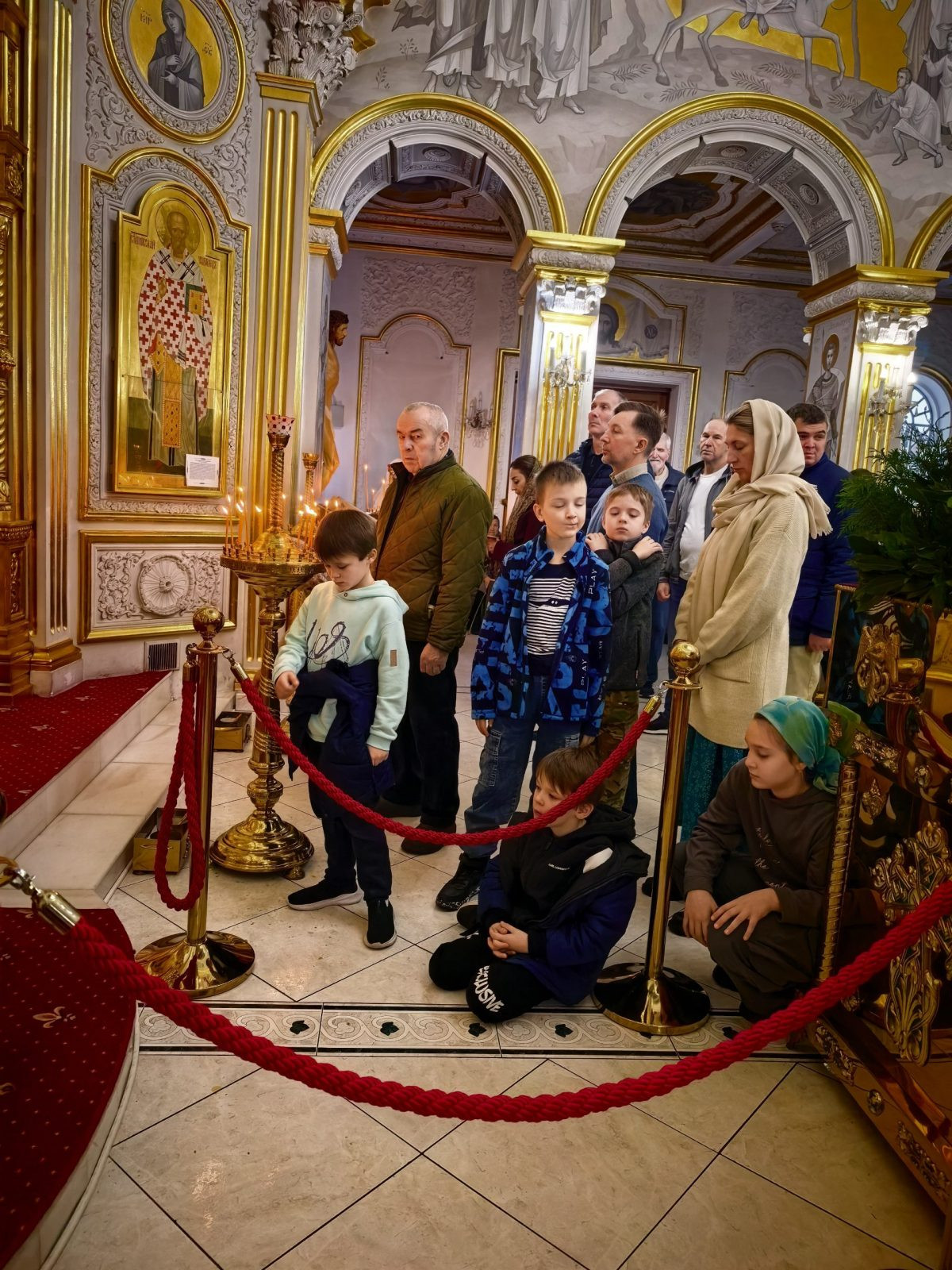 После отпуста настоятель храма игумен Софроний (Есимов) обратился к прихожанам с пастырским словом и поздравил их с Воскресным днем.