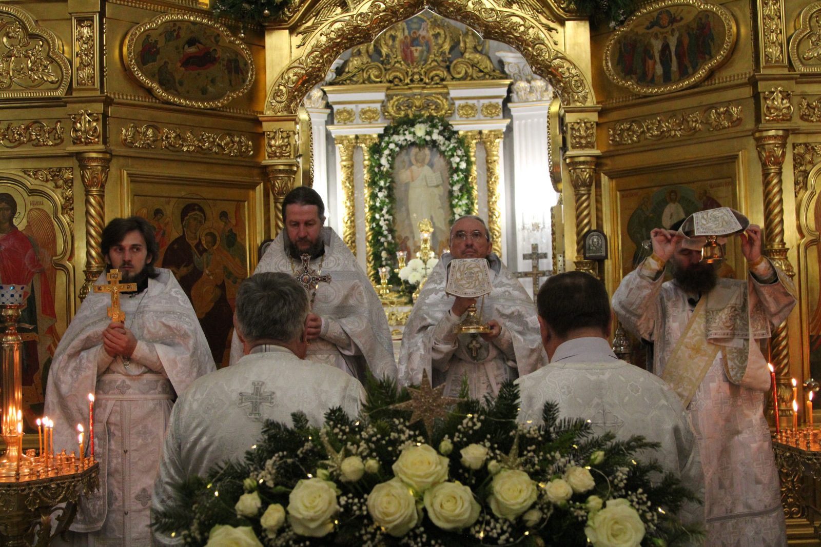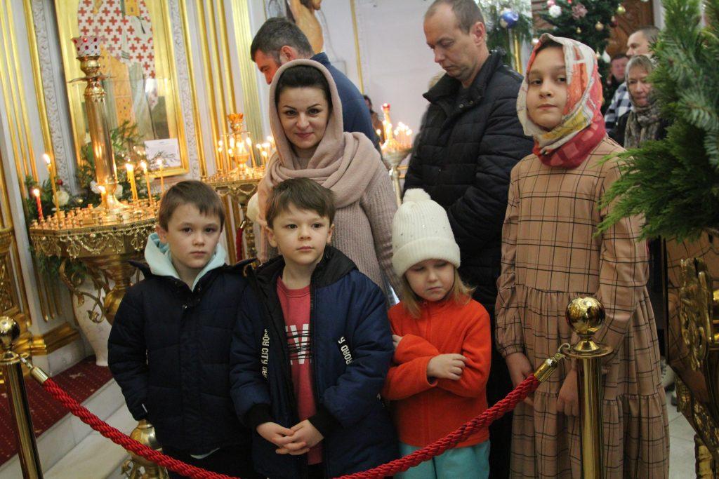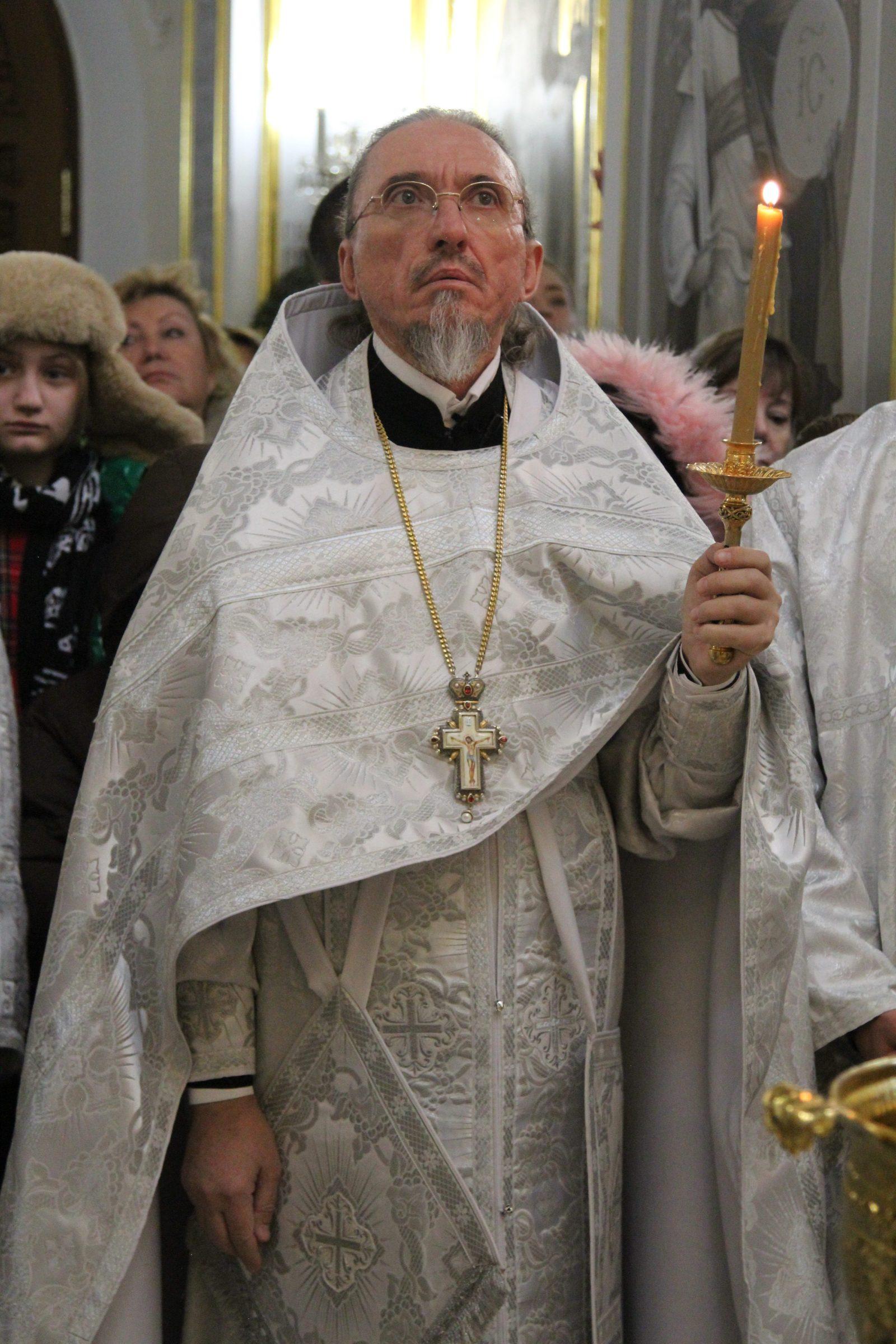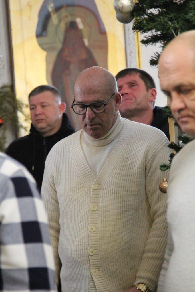 После отпуста настоятель храма игумен Софроний (Есимов) обратился к прихожанам с пастырским словом и поздравил их с Воскресным днем и с на́вечерием Богоявление.