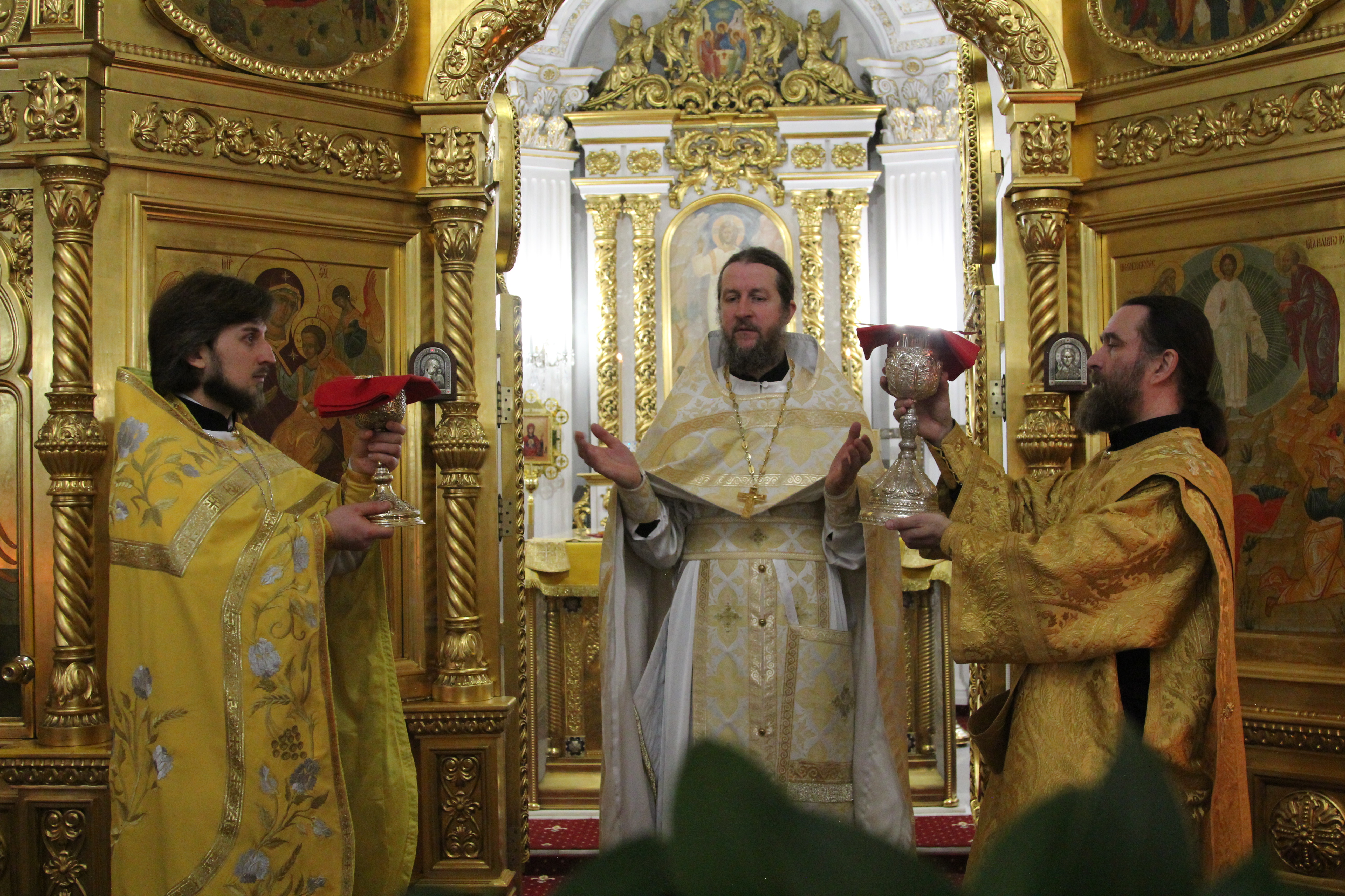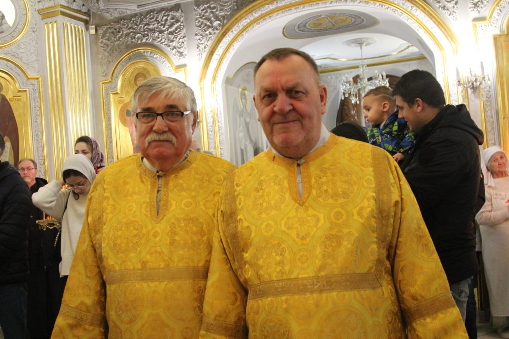 Богослужения возглавил Высокопреосвященнейший Павел, митрополит Ханты-Мансийский и Сургутский в сослужении благочинного Хостинского церковного округа, настоятель храма Преображения Господня игумен Софроний (Есимов), в сослужении штатного духовенства храма: иеромонаха Варсонофия (Куценко), иерея Иоанна Парахина, протодиакона Виктора Коженовского, а так же Игумена Антония (Кирпичева) Секретаря епархия, наместника мужского монастыря святителя Димитрия, митрополита Ростовского, города Ханты-Мансийска. Настоятель храма Покрова Пресвятой Богородицы города Ханты-Мансийска. Игумена Иеронима (Миронова). Наместник Свято-Николаевского монастыря Благочинного церквей Верхотурского округа, иеромонаха Николая (Чебаевского), клирик Свято-Николаевского Верхотурского мужского монастыря.