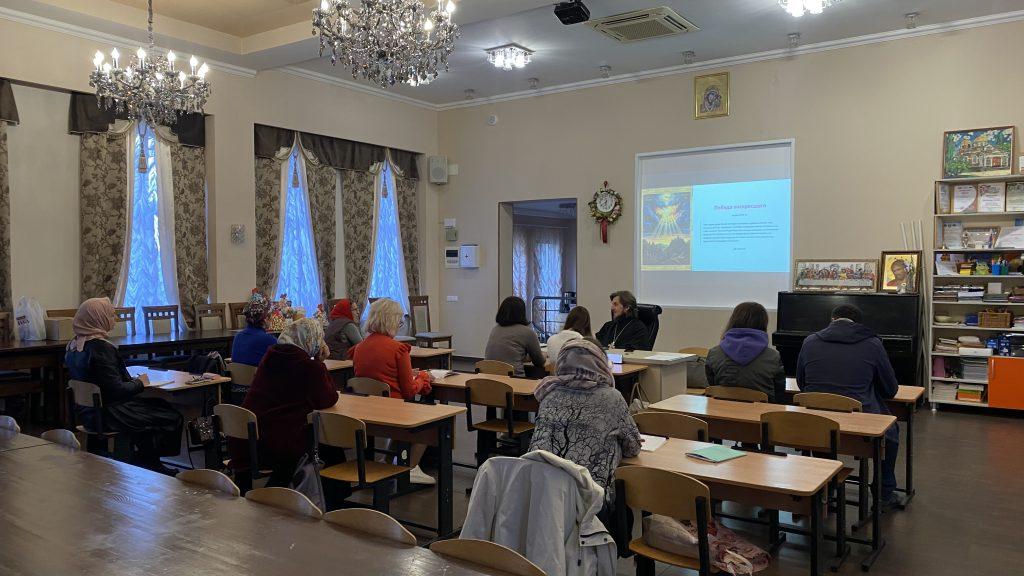 Участники занятия размышляли о духовном смысле Пасхи, значении Воскресения для жизни каждого человека и свидетельствах Евангелия о победе Христа над смертью.