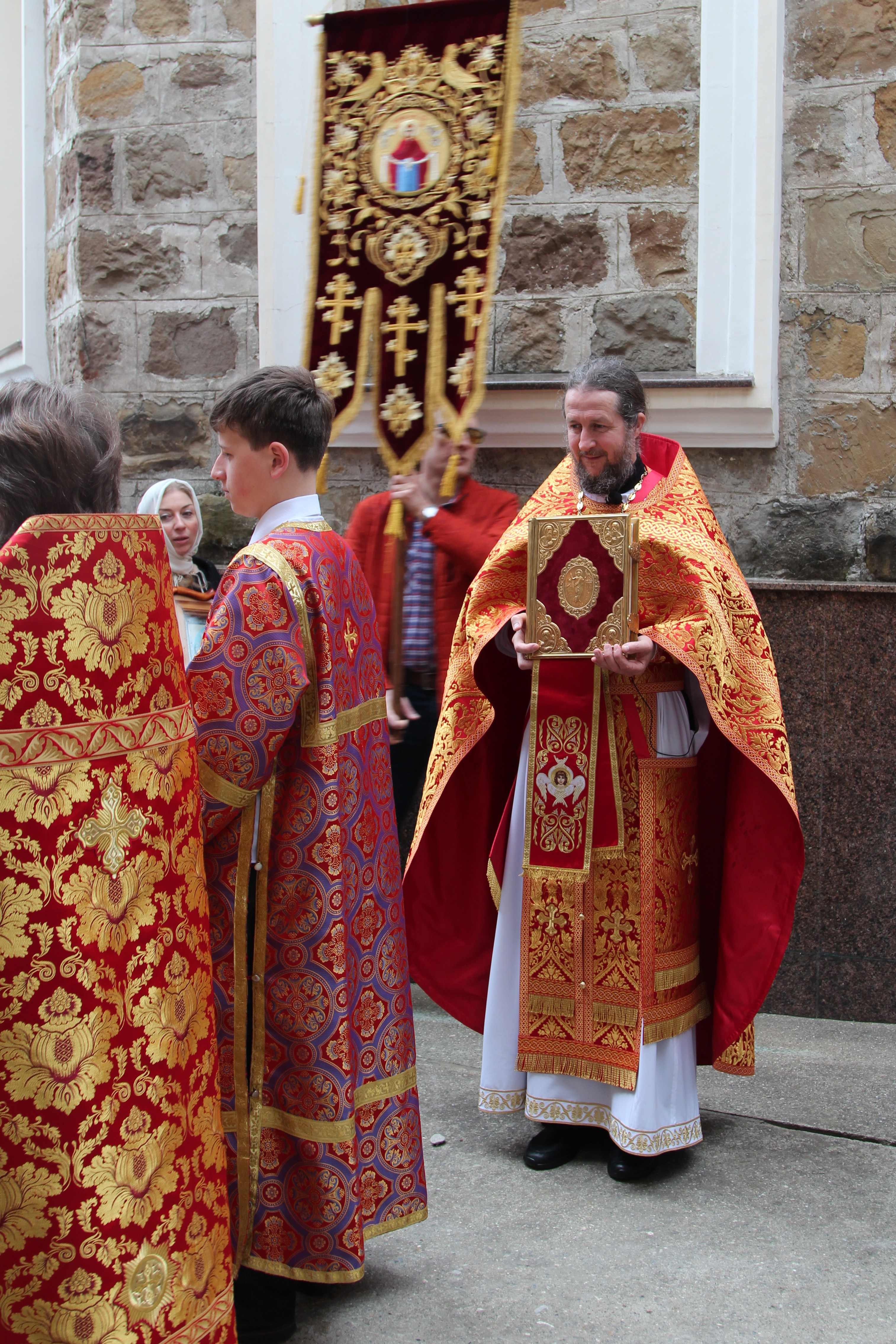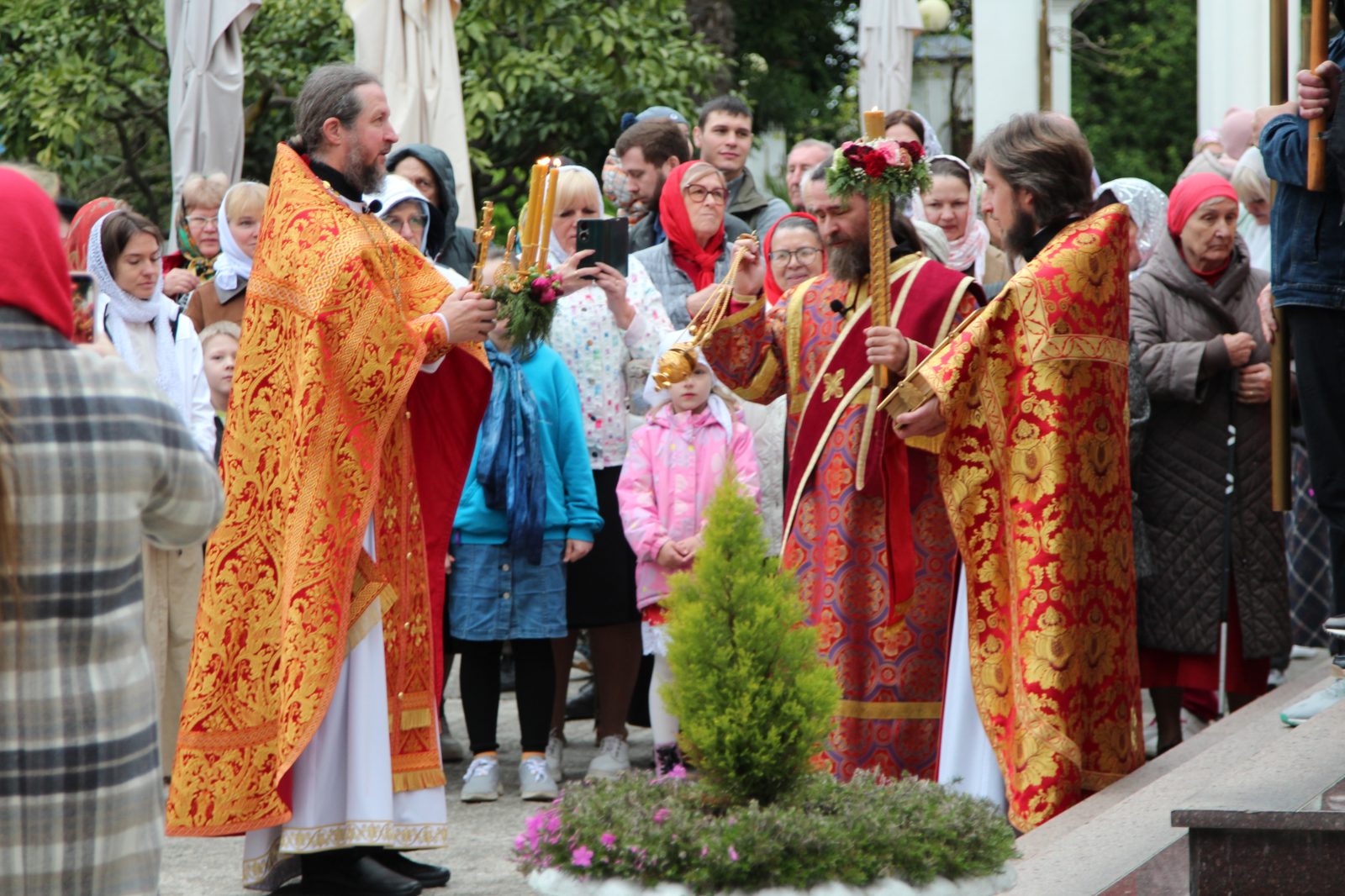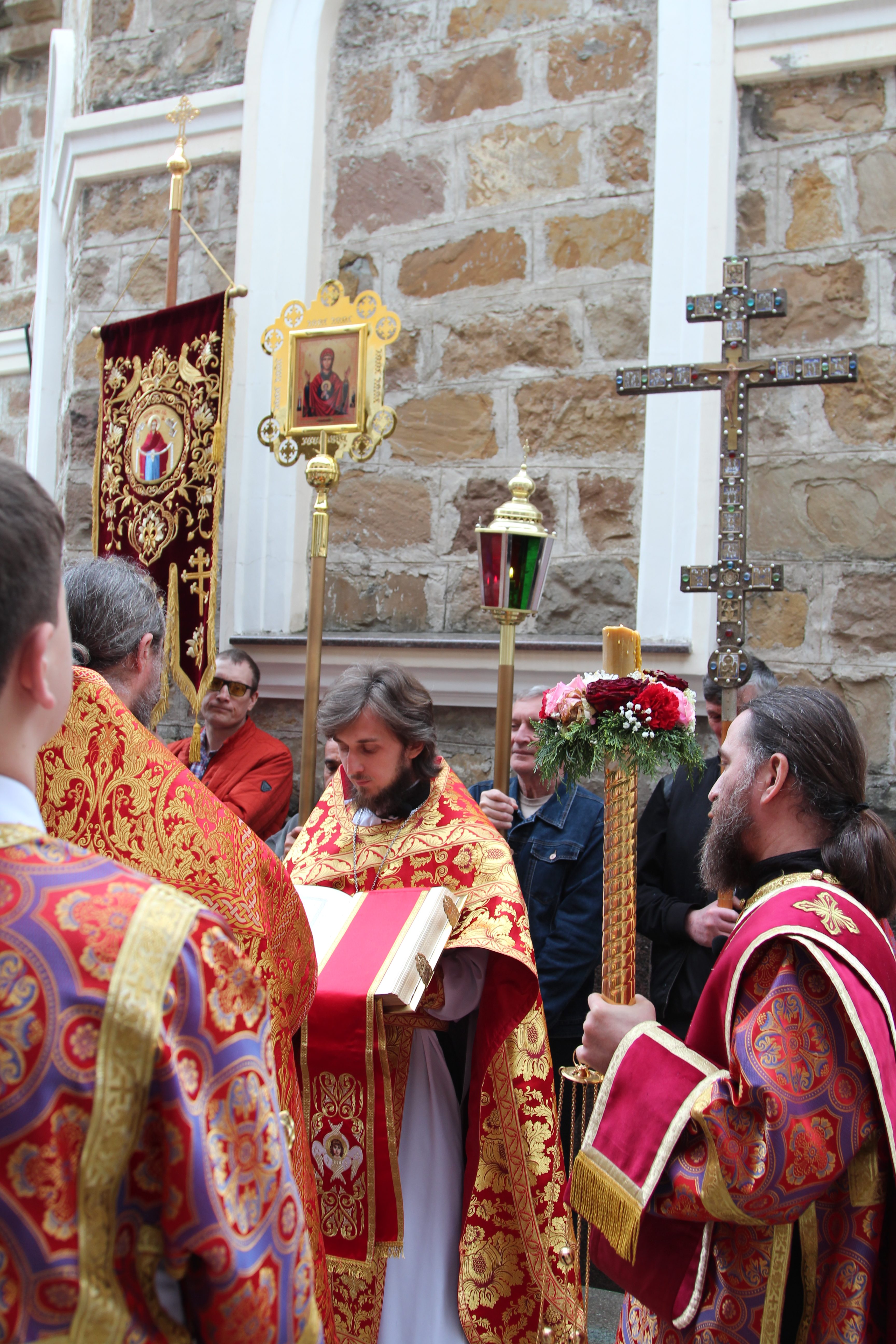 По заамвоной молитве был совершен крестных Ход, а затем прочитана молитва на раздробления Артоса.