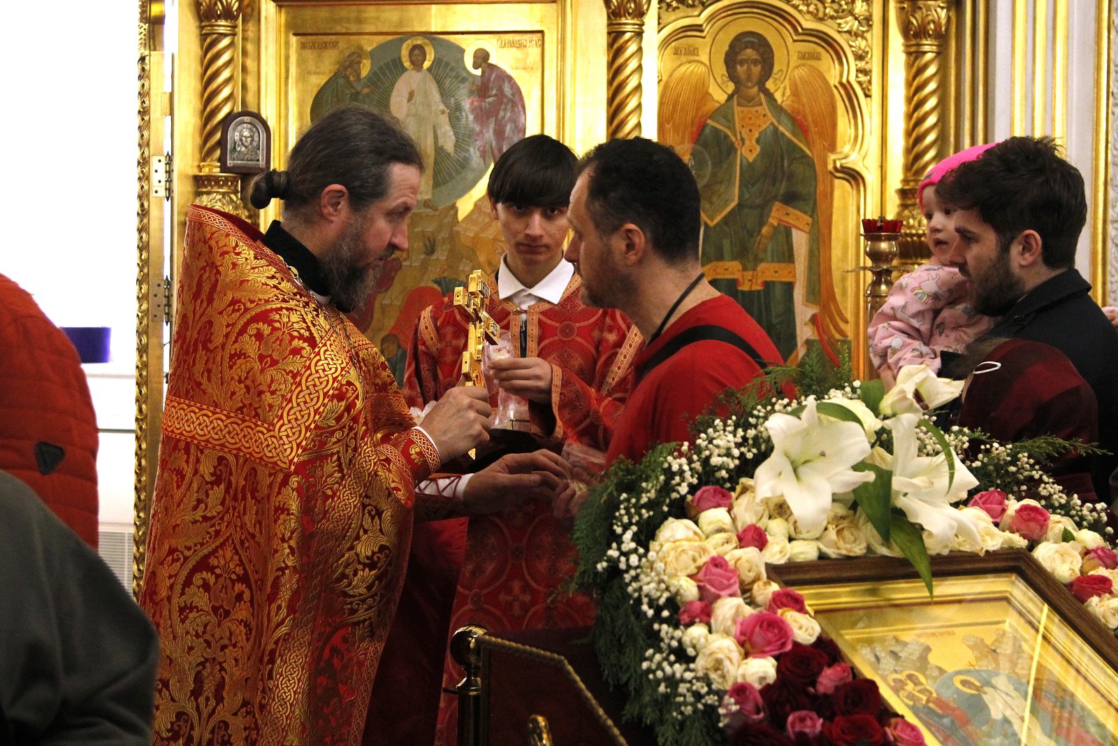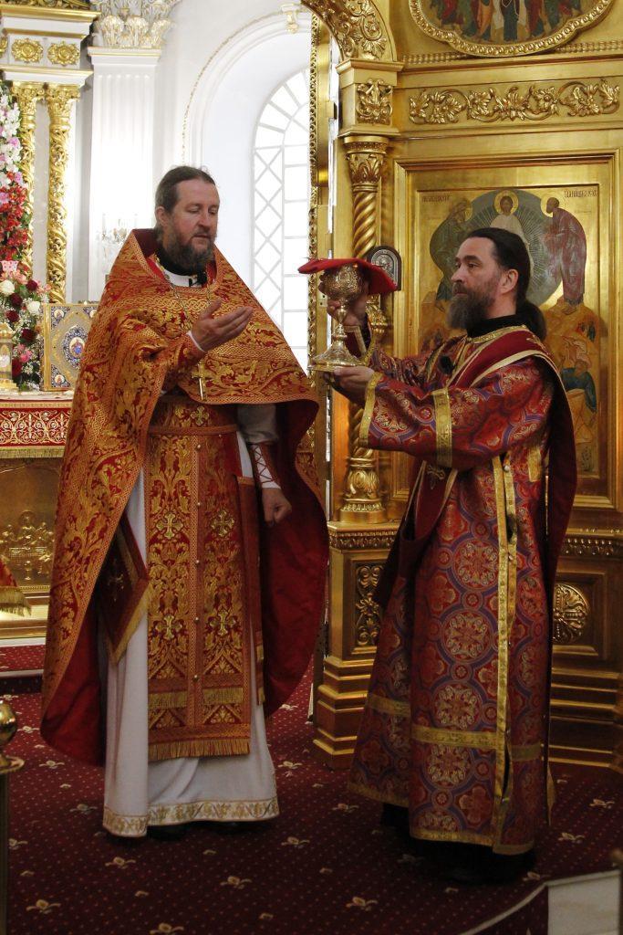 Богослужения совершили клирики храма: иеромонах Варсонофий (Куценко), иерей Иоанн Парахин, протодиакон Виктор Коженовский.