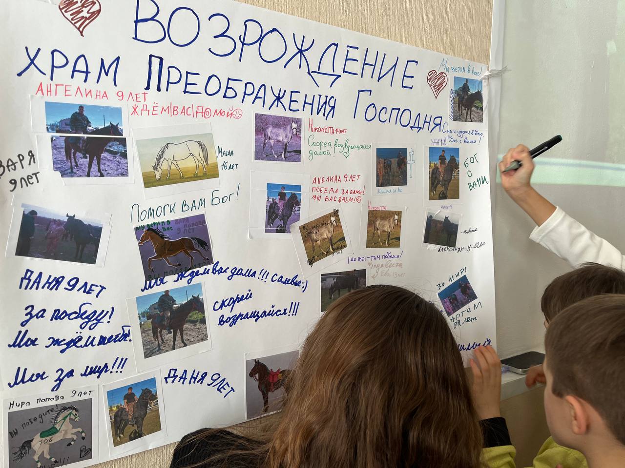 В завершение урока ребята подготовили плакат с тёплыми словами поддержки и благодарности в адрес воинов, защищающих Отечество. Волонтёры передадут его бойцам вместе с очередной гуманитарной помощью.